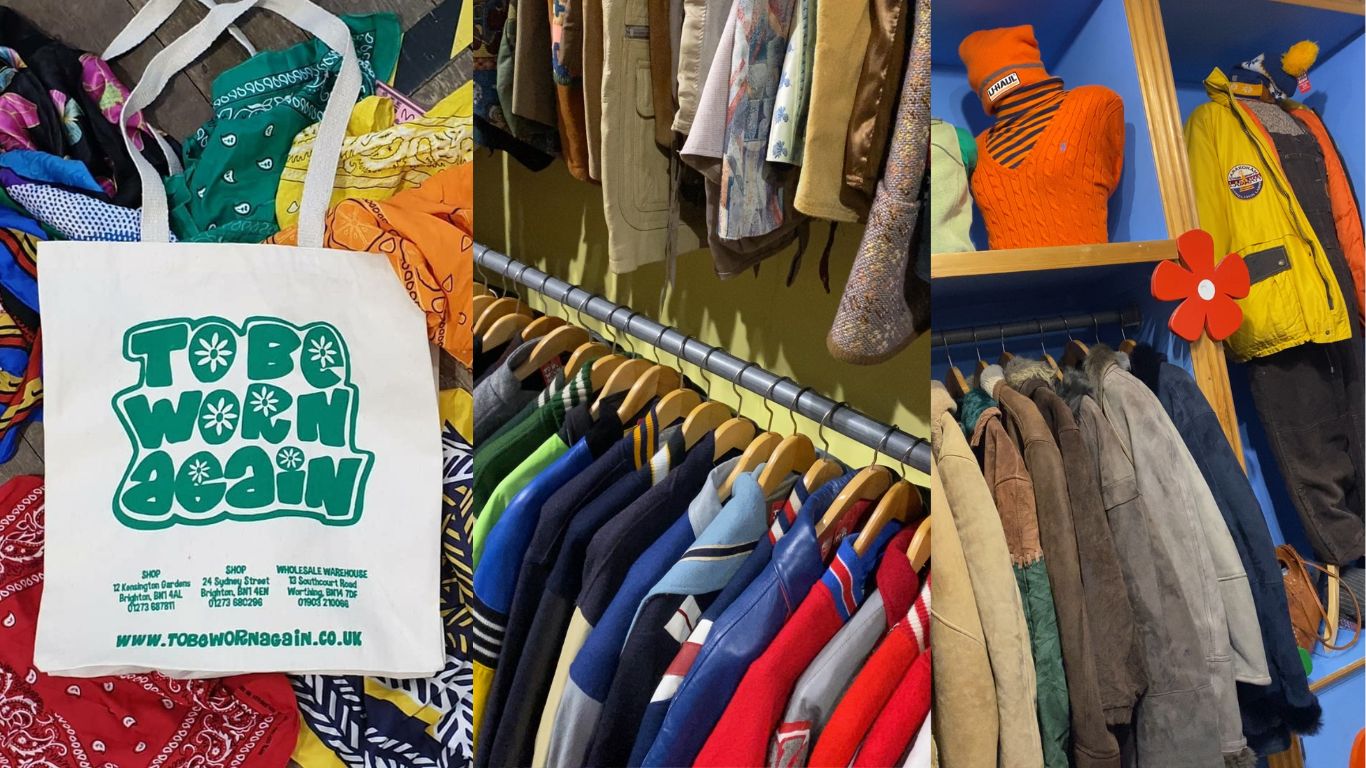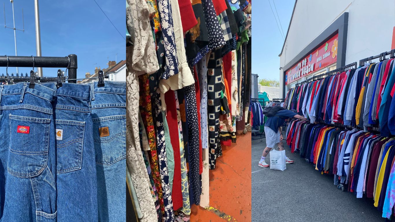 Shop in Brighton, book Worthing warehouse access, or catch our travelling vintage kilo sale.