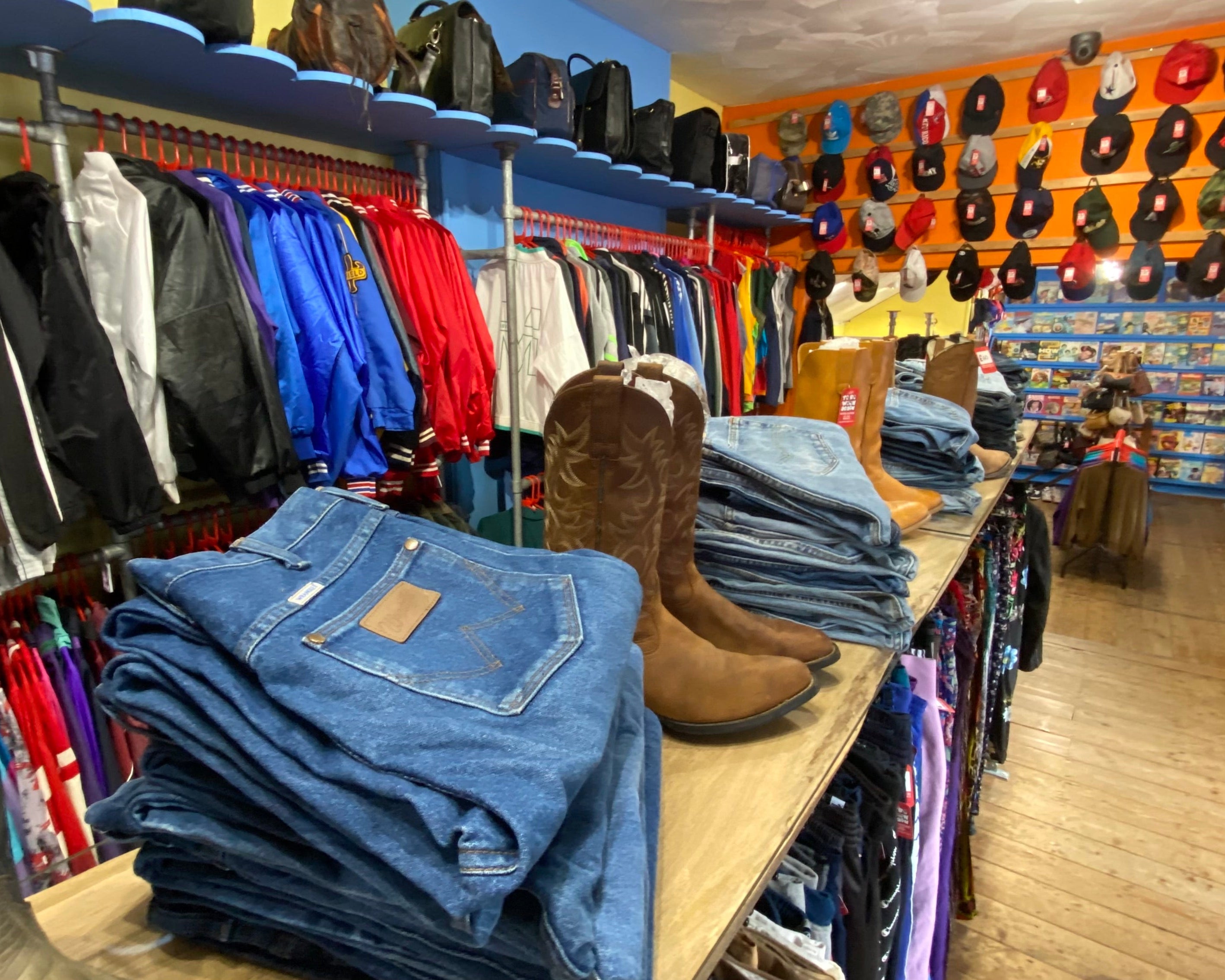 We import the best USA vintage clothing and quality European finds, grading every item (Grade A or B) in our Worthing warehouse. Expect everything from Levi’s 501s and Wrangler carpenter jeans to Carhartt work jackets, Champion Reverse Weave sweats, ’90s and Y2K track tops, band tees, floral prairie dresses, Hawaiian shirts, vintage knitwear, true-retro sportswear and much more —bulk vintage clothing with real resale value. All clothing is secondhand - we believe that vintage is the way to go as there's enough clothing in the world already... plus there's nothing like a unique find!